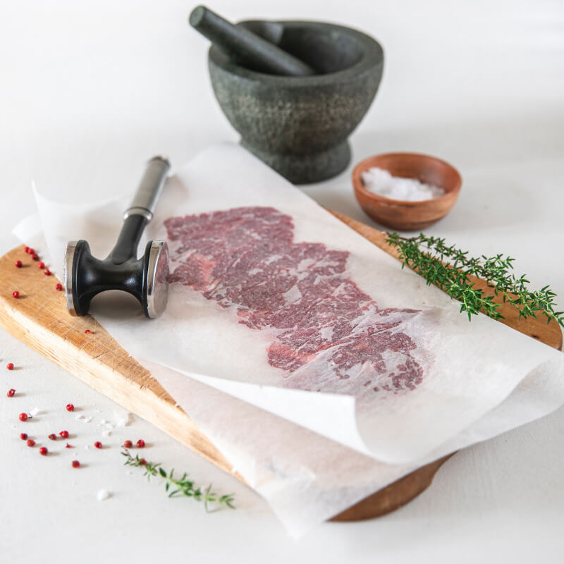 Laita liha- tai kalafilee taitetun leivinpaperin väliin ennen nuijimista.