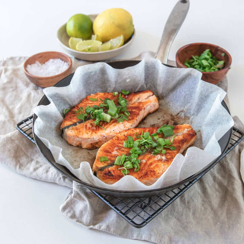 Grillaaminen SAGA Leivinpaperin päällä estää ruokaa palamasta kiinni grilliin.